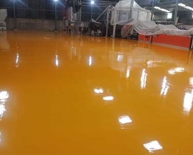 Epoxy flooring is a high-performance, self-leveling system created by mixing epoxy resin with a hardener to form a smooth, glossy, and non-porous surface. It is ideal for industrial and commercial spaces that require strong resistance to abrasion, impact, and chemical spills, such as factories, warehouses, laboratories, workshops, and showrooms. Epoxy flooring is available in various types, including self-leveling floors, anti-static (ESD) systems, heavy-duty epoxy mortar floors, decorative coatings, and high-build epoxy finishes.